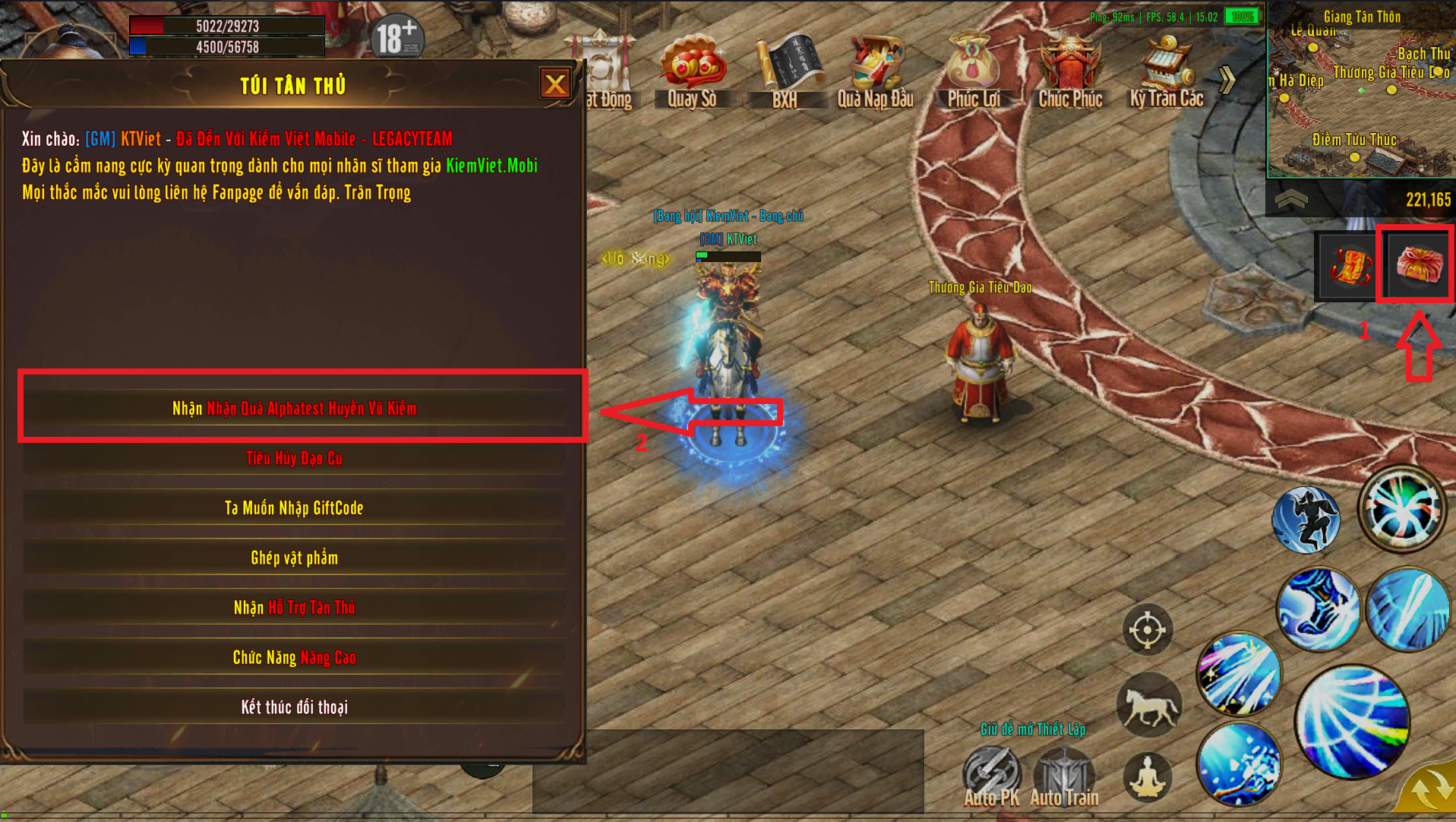 – Sau mỗi trận tống kim 21:00 chụp lại kết quả kèm tên tài khoản gửi về Fanpage Kiếm Việt Mobile