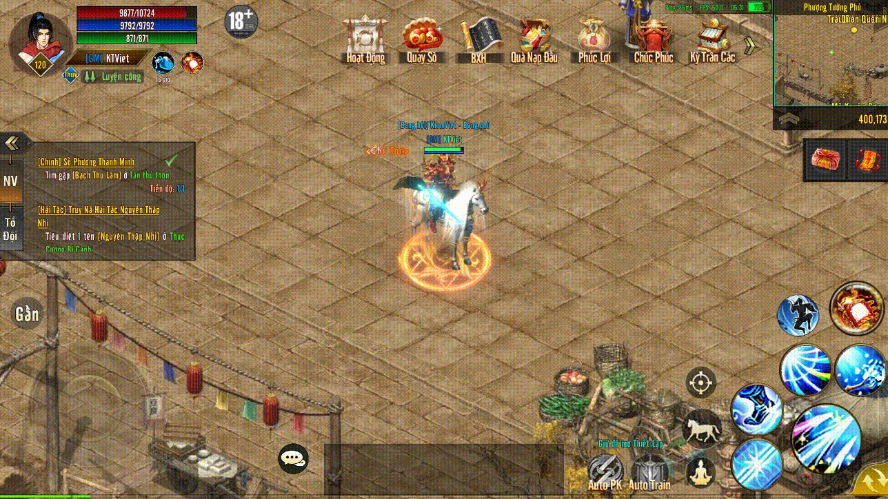 | 2 | x10500 Tiền Du Long x500v Bạc Khoá x80v Đồng Khoá x3 Hoá Hình Phi Phong Vô Song (Không Khoá) x1 SKILL <Kỳ Việt Truyền Kiếm> Level 4 (Vĩnh Viễn – có kèm Vòng Sáng)x1 Danh Hiệu Võ Lâm Thành Chủ (Vĩnh Viễn) Lưu ý : Kỹ Năng yêu cầu tài phú trên 200.000 điểm có thể nhận Lưu ý Đặc Biệt : 200.000 Điểm tính hợp lệ nhận vòng sáng khi Chốt TOP, sau chốt TOP dù bạn được 200.000 điểm vẫn không có vòng sáng! |