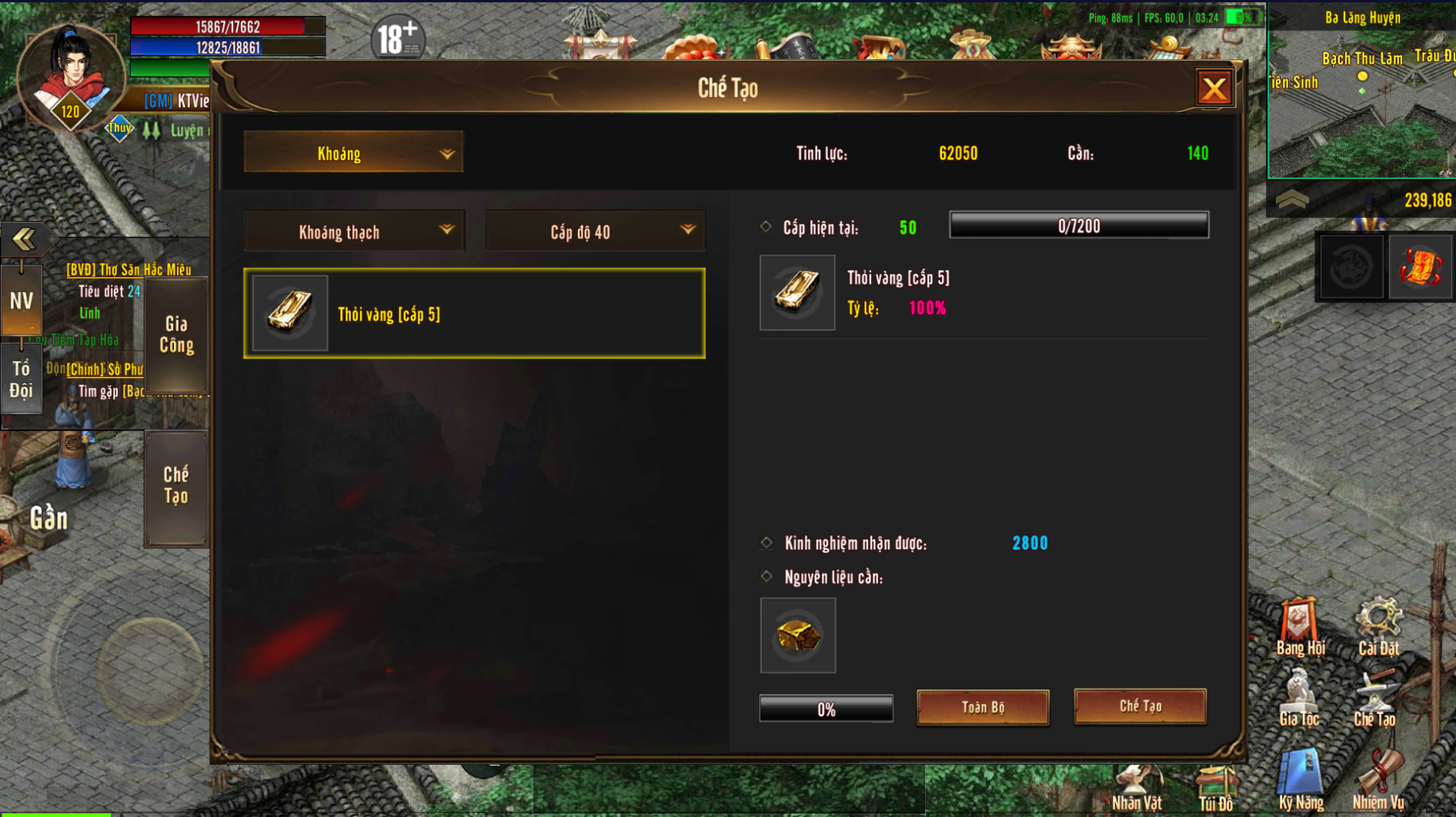 Chế Tạo càng nhiều để nâng cao hơn cấp của Kỹ Năng Sống, giúp bạn chế tạo trang bị cấp cao hơn