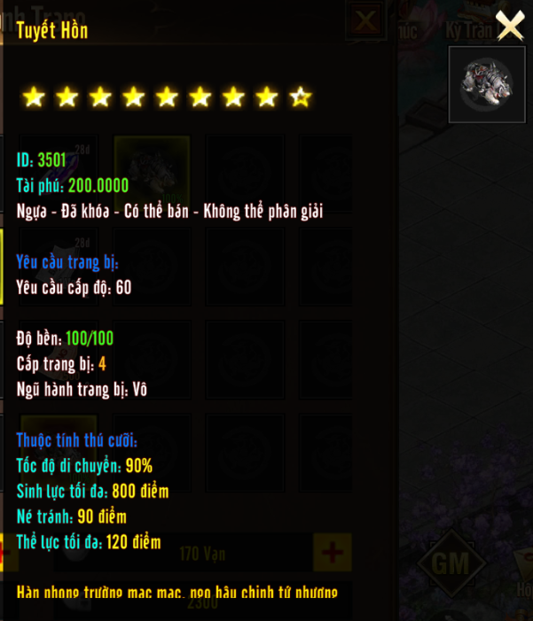 Vé Tuổi Thơ Vui Vẻ![]() | Nguồn Gốc : Đổi Từ x1 Nguyên Liệu Train + x1 Xu Tuổi Thơ tại NPC LỄ QUAN Dùng Nhận : Mỗi lần mở nhận 1.000.000 EXP, Ramdom nhận HT 5,6, Bạc Khoá Mốc thưởng khi sử dụng : Mở Lần Thứ 100 : x3 Huyền Tinh Cấp 7,x1 Huyền Tinh Cấp 8, x500 Tiền Du Long (Nhận Khoá ) Mở Lần Thứ 200 : x5 Huyền Tinh Cấp 7,x1 Huyền Tinh Cấp 8, x500 Tiền Du Long (Nhận Khoá ) Mở Lần Thứ 300 : x6 Huyền Tinh Cấp 7,x1 Huyền Tinh Cấp 8,x500 Tiền Du Long (Nhận Khoá ) Mở Lần Thứ 500 : x7 Huyền Tinh Cấp 7,x2 Huyền Tinh Cấp 8, x500 Tiền Du Long (Nhận Khoá ) x1 Ngựa Tuyết Hồn 12 ngày x3 Liên Đấu Hoàng Kim Bài, X2 Thỏi Bạc Bang Hội Tiểu ![]() |