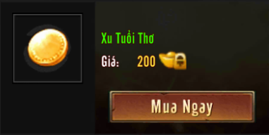 Xu Tuổi Thơ![]() | Nguồn Gốc : Mua tại Kỳ Trân Các khu Đồng Khoá Chức Năng : Đổi thành vật phẩm Vé Tuổi Thơ Vui Vẻ ![]() |
